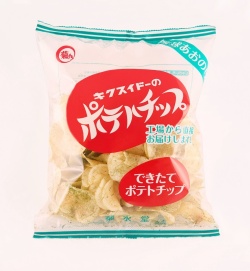 菊水堂のポテトチップは直火独特の味わい、自社工場で生産し、そのままお届け
